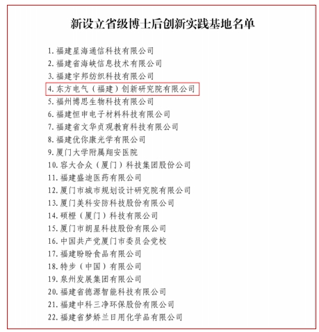 近日,福建省人力资源和社会保障厅公布了46家新设立省级博士后创新实践基地名单,抖阴视频 东方电气(福建)创新研究院有限公司榜上有名。